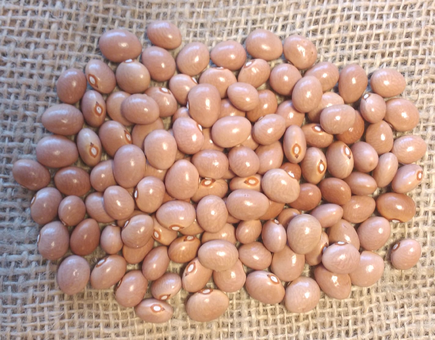 Huge harvest of beans for eating at pod stage and for shelling out. Dark purple pods. Lovely round pinkish seeds, a delight to shell out. Does very well whatever kind of UK summer! Climbing French bean.