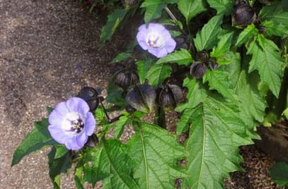 Violet blue bell-shaped flowers. Annual up to 75cm tall, sown direct in mid spring. Sometimes grown between vegetables reputedly to keep flies away. Self seeds. Dried flower pods are used in dried- flower arrangements. Nicandra physalodes